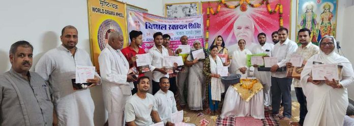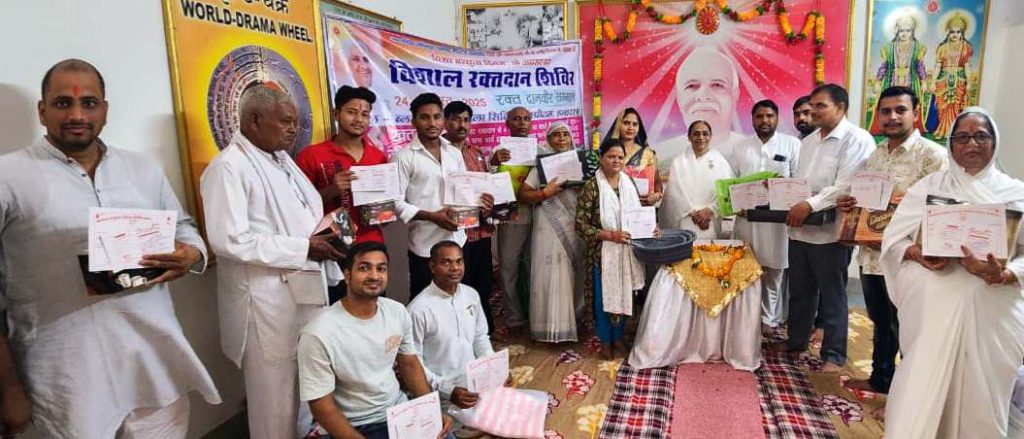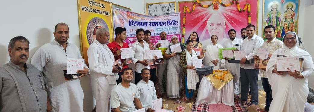 हाथरस‚ आनन्दपुरी कालोनी‚ उ.प्र. : एक तरफ पहली बार रक्तदान करने की खुशी‚ दूसरी खुशी ब्लड बैंक और ब्रहमाकुमारीज संगठन द्वारा प्राप्त प्रमाणपत्र एवं डोनर कार्ड जिससे किसी जरूरतमंद की मदद की जा सकेगी तीसरा संगठन द्वारा रिटर्न गिफ्ट ‚ इतना सबकुछ एक छोटी सी पहल से प्राप्त होगा‚ ऐसी खुशी आज रक्तदानवीरों के चेहरे पर झलक रही थी। अवसर था प्रजापिता ब्रहमाकुमारी ईश्वरीय विश्व विदयालय के अलीगढ रोड स्थित आनन्दपुरी कालोनी केन्द्र द्वारा विश्व बंधुत्व दिवस के अवसर पर आयोजित रक्तदान शिविर के रक्तदानवीरों के सम्मान का।