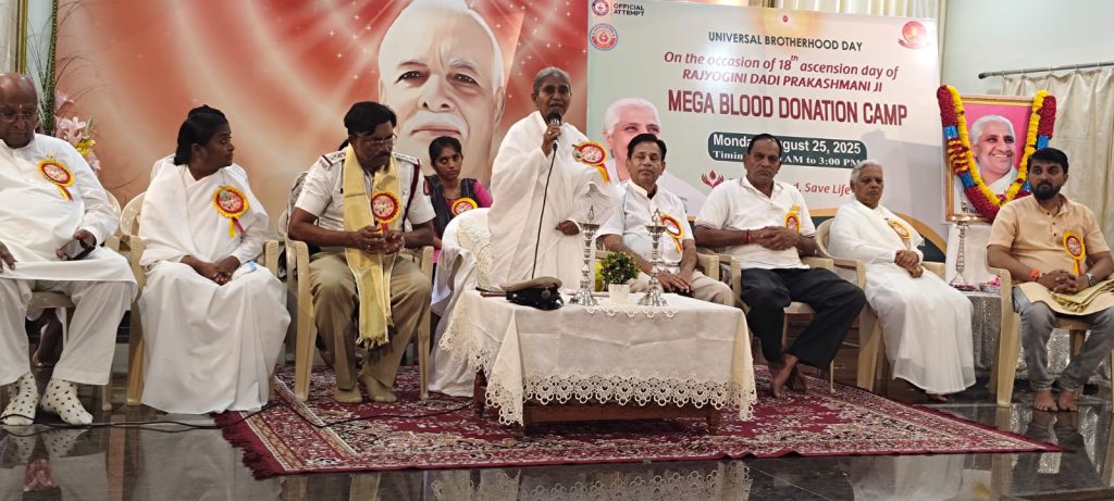 जक्कुर, कर्नाटक । बेंगलुरु के जक्कुर रिट्रीट सेंटर में दादी प्रकाशमणि जी की 18वीं पुण्यतिथि के पावन अवसर पर रक्तदान शिविर का आयोजन किया गया। यह आयोजन दादी जी के जीवन के उन उच्च आदर्शों को याद करने का एक माध्यम था, जिनमें सेवा, त्याग और करुणा सबसे प्रमुख रहे।