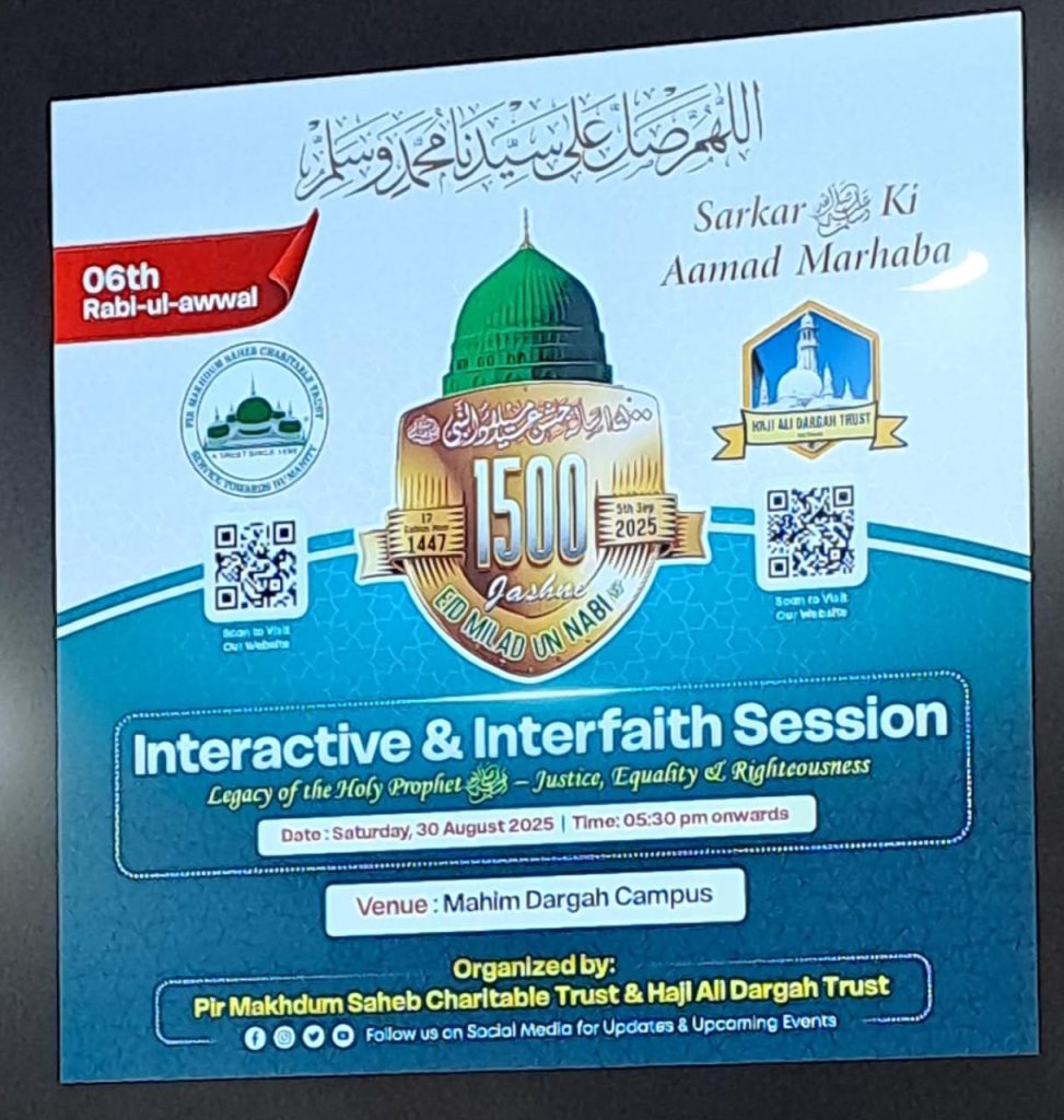Mumbai-Mahim, Maharastra: An interfaith seminar on the theme “Practice of Justice, Equality & Righteousness in My Religion” was organized on Saturday at the Campus of Mahim Dargah Trust, Mahim. The event saw participation from representatives of various religions.