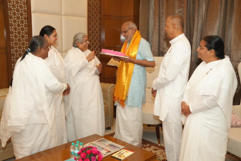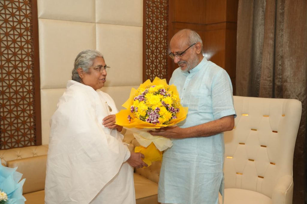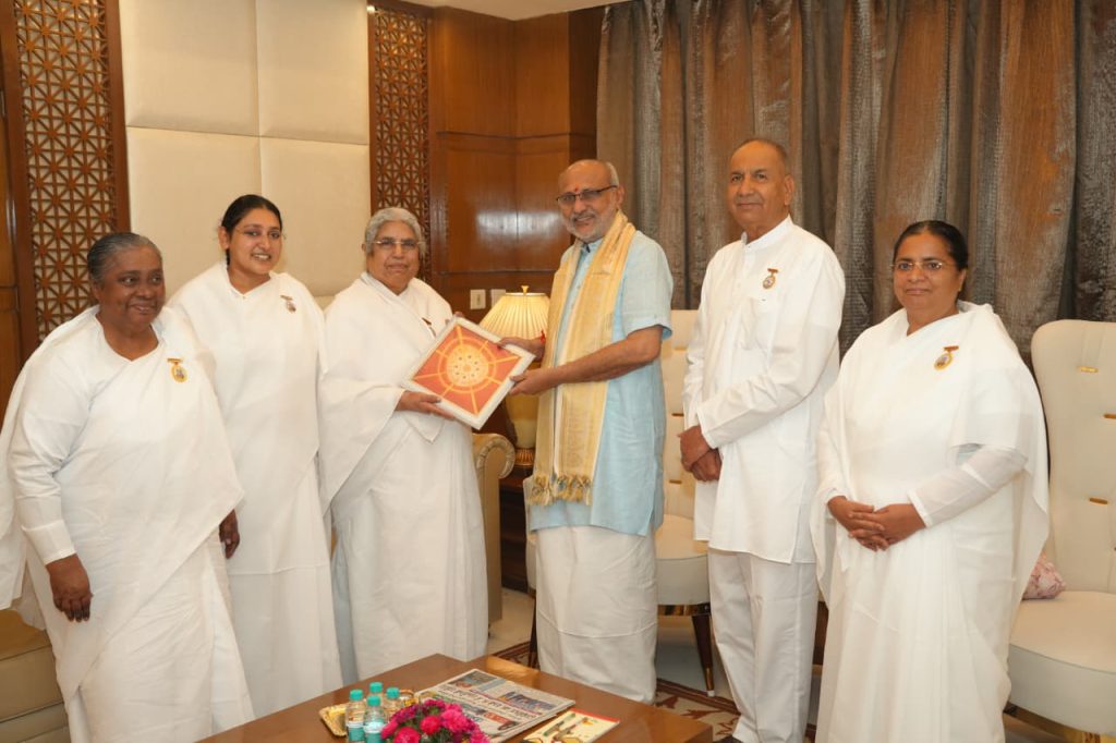नई दिल्ली: ब्रह्माकुमारीज़ संस्थान के प्रतिनिधिमंडल ने भारत के नव निर्वाचित उप राष्ट्रपति माननीय सीपी राधाकृष्णन से भेंट कर उन्हें हार्दिक शुभकामनाएं दी। गुरुग्राम स्थित ओम शांति रिट्रीट सेंटर की निदेशिका राजयोगिनी आशा दीदी, संस्थान के कर्नाटक, मैसूर जोन की निदेशिका राजयोगिनी लक्ष्मी दीदी सहित अनेक सदस्यों ने उनसे मुलाकात की। साथ ही उनके कार्यकाल में भारत की खुशहाली एवं समृद्धि की कामना की। माननीय उप राष्ट्रपति को संस्थान के मुख्यालय, माउंट आबू का निमंत्रण भी दिया गया। जिसे स्वीकार करते हुए उन्होंने कहा कि वो दो बार पहले भी माउंट आबू होकर आए हैं। मुलाकात के बाद कुछ समय उन्हें राजयोग का अभ्यास कराया गया। इस अवसर पर माननीय सीपी राधाकृष्णन को प्रभु प्रसाद के साथ ईश्वरीय स्मृति चिन्ह भी भेंट किया गया।