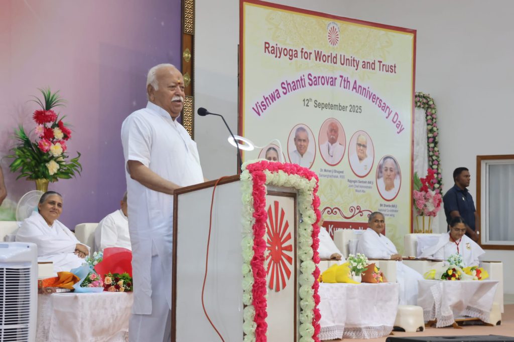 सरसंघचालक डॉ. भागवत ने कहा कि अयं निजः परो वेति गणना लघुचेतसाम्। उदारचरितानां तु वसुधैव कुटुम्बकम्॥ क्योंकि हमें यह कनेक्शन पता है। यह भाव हमारे अंदर है लेकिन हमारी कृति से भी दिखना चाहिए। भारत पहले से भरपूर है, जरूरत है तो भारतवासियों को भरपूर होने की। इसलिए भारतवासियों को इस तरह का ज्ञान देने वाले समय-समय पर आते हैं। जैसे गीता के भगवान आए, जैसे शिव बाबा आए। प्रकृति विविध है, रुचि विविध है। किसी को कोई गाना पसंद आता है, किसी को कोई गाना पसंद आता है। सभी लोगों को सही रास्ते पर लाने के लिए, वहां तक जाने के सभी के रास्ते अलग-अलग हो सकते हैं। लेकिन एक ही तत्व खेल कर रहा है। कई तरह की कार्यपद्धति को लेकर काम करने वाले प्रवाह आज भारत में विद्यमान हैं। उसमें एक बहुत बड़ा विराट प्रयास ब्रह्माकुमारीज़ का है। ब्रह्माकुमारीज़ में भैया-बहनों का रिश्ता है तो सारी समस्याएं यहीं खत्म हो जाती हैं।