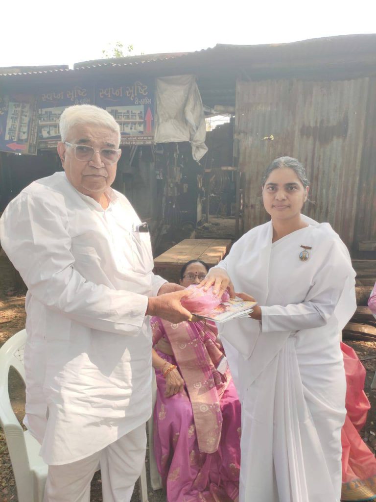 मरोली ,गुजरात। हर वर्ष की तरह गुजराती नए वर्ष के उपलक्ष में मरोली बाजार स्थित “जगदीश सोसाइटी” में प्रेसिडेंट श्री वसंत पटेल ने सोसाइटी मेंबर्स के लिए स्नेह-मिलन रखा ।जिसमें ब्रह्माकुमारीज को विशेष “बिलियन मिनट्स ऑफ पीस अपील प्रोजेक्ट” के बारे में समझाने के लिए समय दिया गया। जिससे विश्व शांति के लिए अधिक से अधिक लोग शांति दान के इस महान कार्य में जुड़ सके।