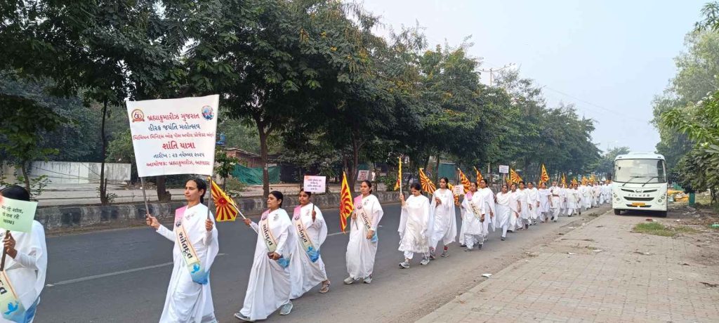 ब्रह्माकुमारीज़ गुजरात ज़ोन की सेवाओं के 60 साल पूरे होने के डायमंड जुबली सेलिब्रेशन के अंतर्गत रविवार, 23 नवंबर को सुबह 7 से 8 बजे तक पूरे राज्य के 512 सेवा केन्द्रों पर शांति यात्रा का आयोजन किया गया। इस अवसर पर ब्रह्माकुमारीज़ अटलादरा सेवाकेंद्र से 200 शांति दूतों की पदयात्रा निकाली गई। शांति के प्रेरक स्लोगन और बैनर के द्वारा भी इस मौन यात्रा में शांति संदेश दिए गए।