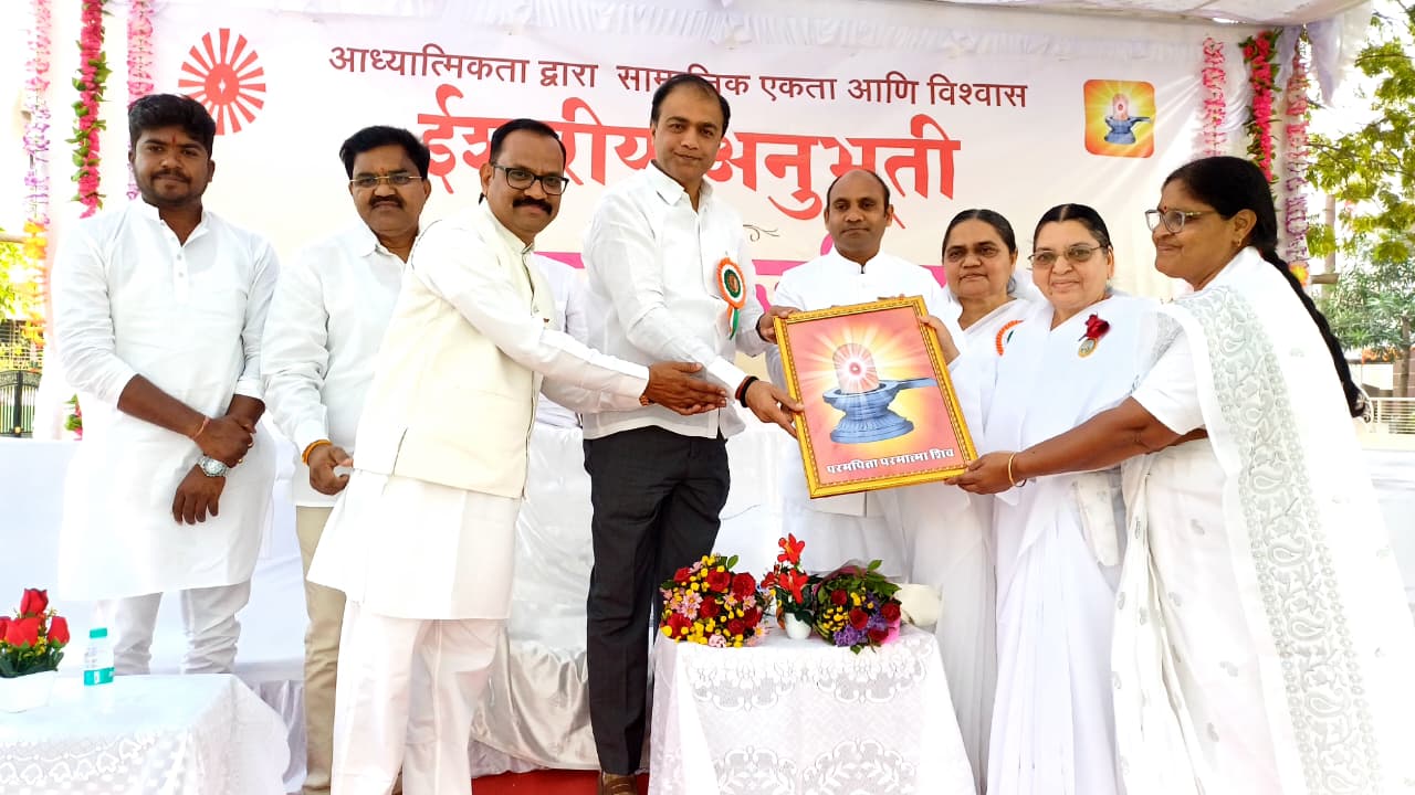 वर्धा, महाराष्ट्र। आध्यात्मिकता द्वारा सामाजिक एकता और विश्वास कार्यक्रम में वर्धा के पालक मंत्री डॉ. पंकज भोयर जी को ईश्वरीय सौगात देते हुए कामठी सेवाकेंद्र के प्रभारी प्रेमलता दीदी , वर्धा सेवाकेंद्र के प्रभारी माधुरी दीदी , अर्चना बहन घोडे और सतीश भाई घोडे।