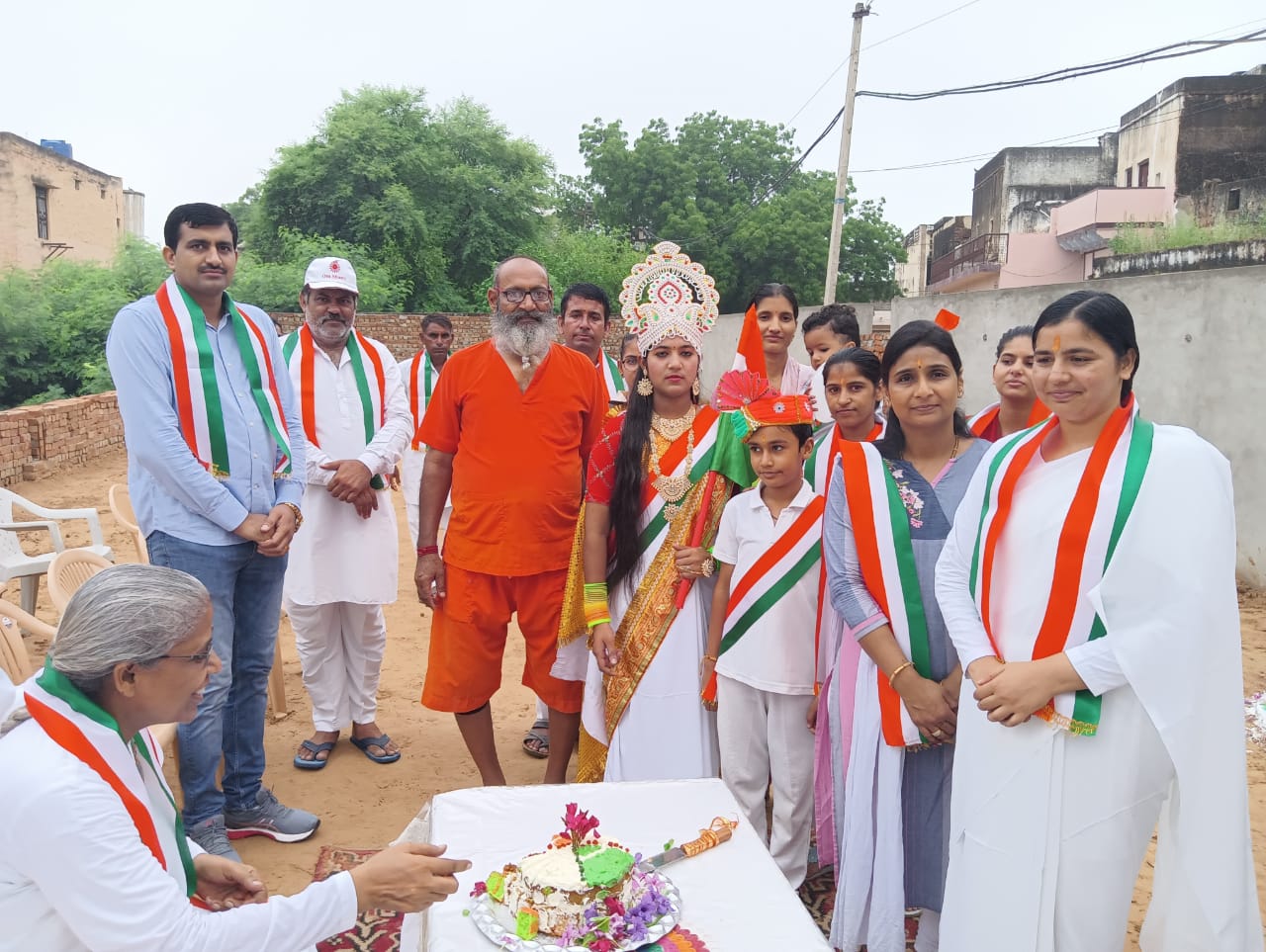स्वाधीनता दिवस कार्यक्रम में केक काटते हुए
