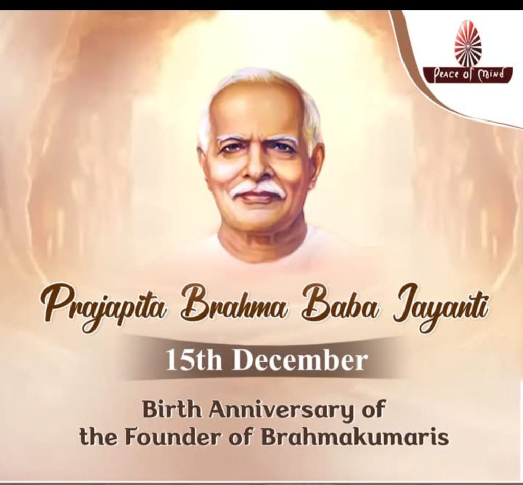 आबू रोड, राजस्थान। 15 दिसम्बर के दिन ऐसे परम पूज्य दादा लेखराज उर्फ़ प्रजापिता ब्रह्मा बाबा जी की जन्म जयंती है, जिनके माध्यम से सर्वशक्तिमान परमपिता परमात्मा शिव ने पुनः इस धरा पर ज्ञान, योग और शक्ति के सागर को प्रवाहित किया। ऐसे भागीरथ ब्रह्माबाबा ईश्वरीय मार्ग पर चलते हुए स्वयं के जीवन को आदर्श बनाकर अनेकों आत्माओं को पवित्रता, शान्ति और सुख की राह दिखाई, वही आज विश्व‑उद्धार के निमित्त “विश्व आध्यात्मिक उत्थान दिवस” रूप में स्मरण किए जाते हैं। इस पावन जयंती के अवसर पर ब्रह्मा बाबा जी को कोटि‑कोटि वंदन।
