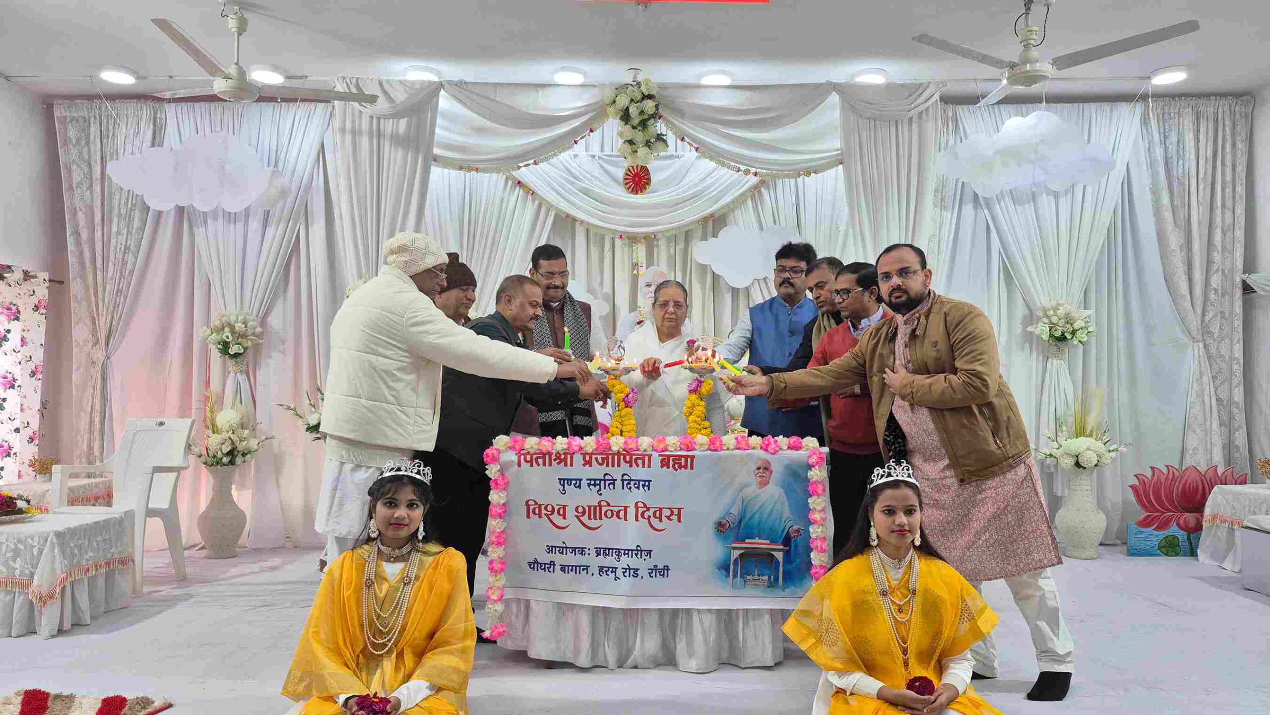 ब्रह्माकुमारीज़, चौधरी बागान, हरमू रोड, रांची में आयोजित ब्रह्मा बाबा के स्मृति में दीप प्रज्वलित करते हुए बी के प्रदीप, रौनियार वैश्य समाज के महासचिव गिरधर लाल, व्यवसाई मुकेश काबरा, राज्य सभा सांसद दीपक प्रकाश, बी के निर्मला, मारवाड़ी सहायक समिति के उपाध्यक्ष रमन बोड़ा , राजकीय उच्च विद्यालय, हटिया के प्राचार्य हीराकान्त झा, राय विश्वविद्यालय के प्राध्यापक रोबिन कुमार तथा एस बी आई मेकॉन शाखा के प्रवन्धक निखिल कुमार।