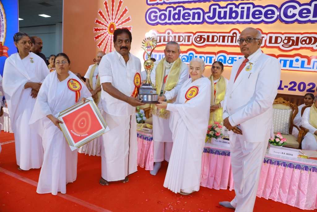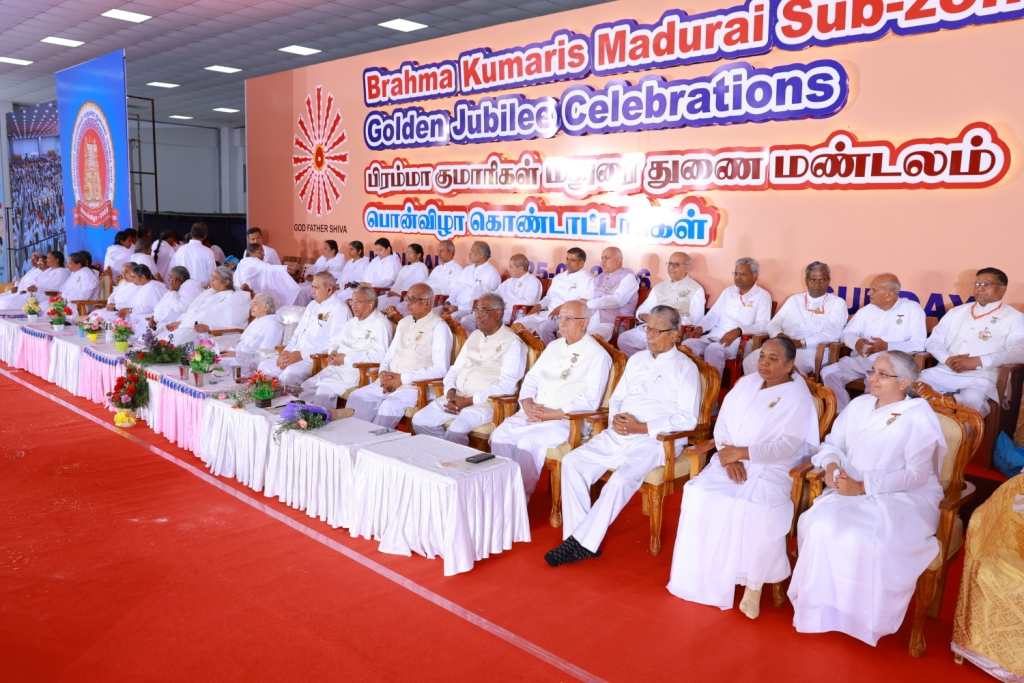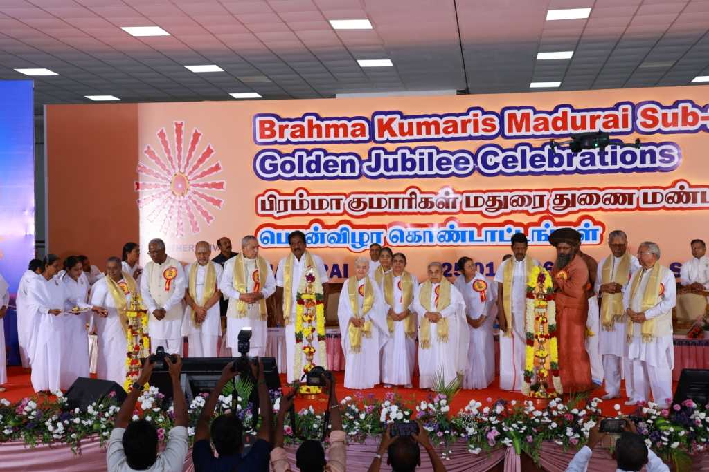 “I congratulate everyone on the Golden Jubilee year of the Brahma Kumaris Madurai Sub-Zone. Humility is a quality that everyone should possess. When thoughts are clear, time is utilized effectively. The power of the mind is immense; it increases self-confidence and makes it easy to face challenges. Everyone shares the responsibility of creating a society filled with peace and harmony.