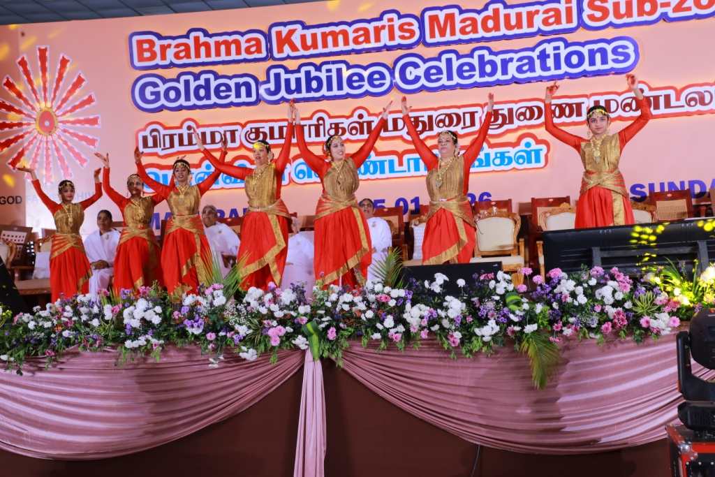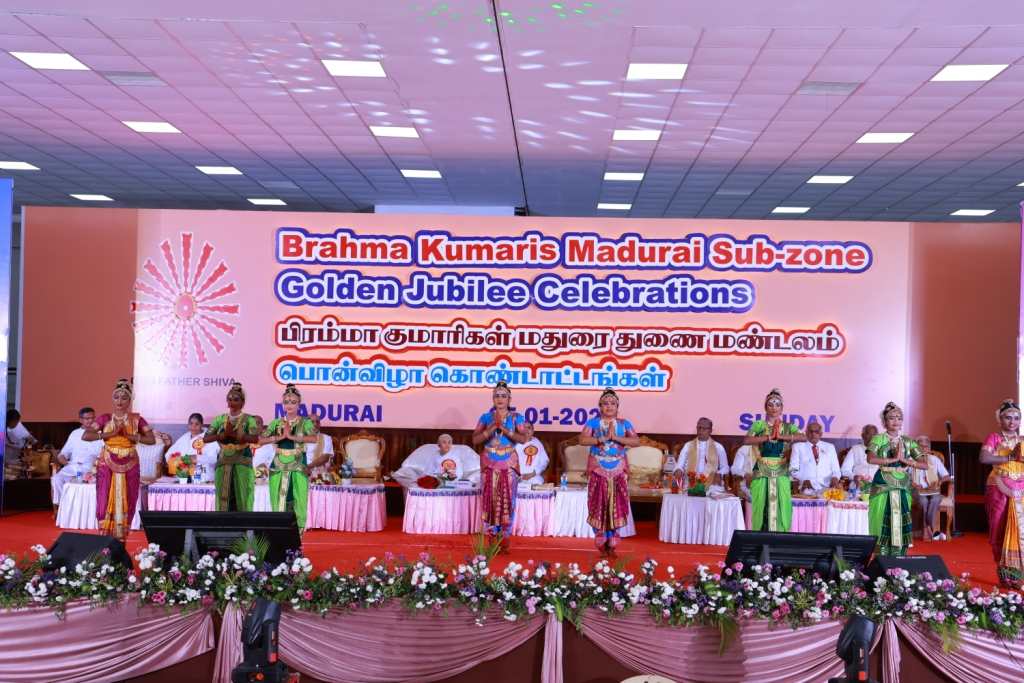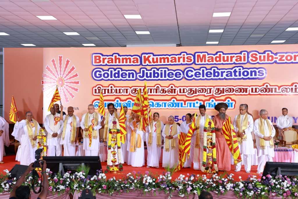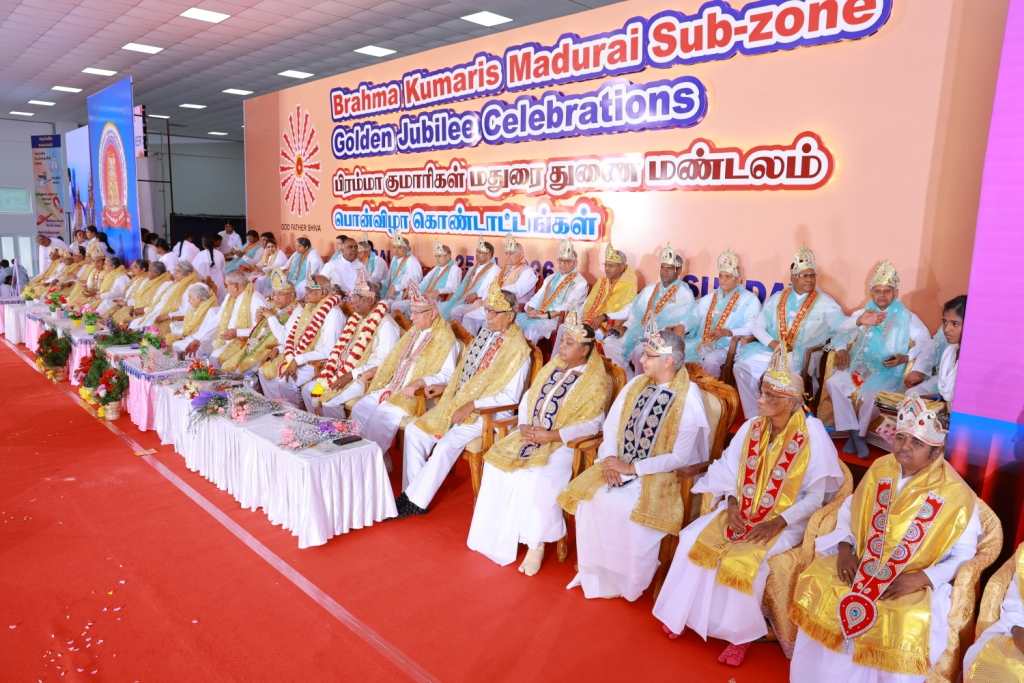 The Golden Jubilee celebrations of the Madurai Sub-Zone of the Brahma Kumaris were held grandly on Sunday evening at the Tamukkam Convention Centre in Madurai. Speaking as the special guest, Jayanti Didi, a Rajyogini with 70 years of spiritual practice, said: