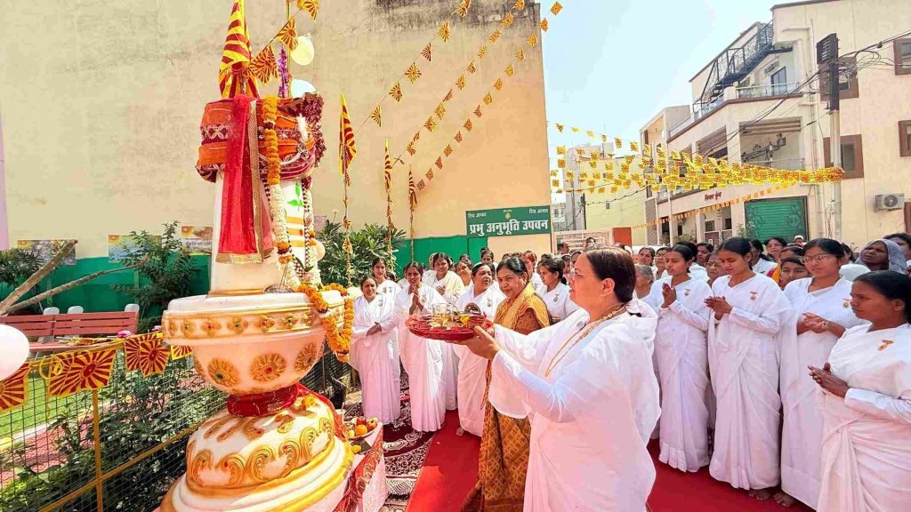 महाशिवरात्रि महोत्सव के शुभ अवसर पर शिव ध्वजारोहण भी किया गया एवं आदरणीय दीदी जी ने सभी भक्तगणों को परमात्मा शिव की प्रतिज्ञा करा कर भगवान की श्रीमत पर चलने का संकल्प दिलाया।