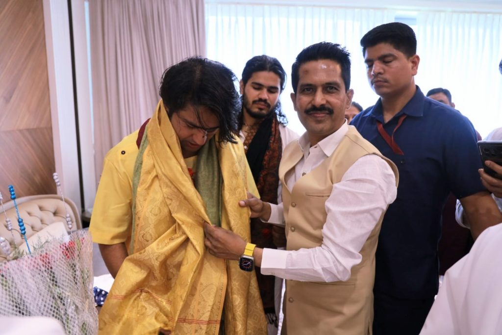 बी के वर्षा दीदी ने बागेश्वर धाम सरकार जी का फुलों का गुलद्ता देकर से स्वागत किया। बी के डॅाक्टर दीपक हरके ने उन्हे शॉल ओढ़ाकर सम्मानित किया। बी के वर्षा दीदी ने बागेश्वर धाम सरकार जी को संस्था की गतीविधीयो से अवगत कराते हुए उन्हे परमपिता परमात्मा शिव बाबा का परिचय देकर परमपिता परमात्मा शिव की फ्रेम और सुप्रसिद्ध प्रेरक वक्ता बी के शिवानी दीदी की असीम आनंद की ओर किताब भेट दिया गया। संस्था के आंतरराष्ट्रीय मुख्यालय आबू राज आने का निमंत्रण दिया। इस अवसर पर बी के डॅा दीपक हरके तथा बी के गौरी दीदी उपस्थित थे।