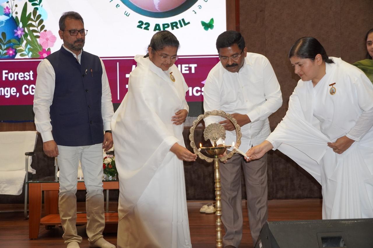 नवा रायपुर,छत्तीसगढ़ : छत्तीसगढ़ शासन के वन एवं जलवायु परिवर्तन विभाग और प्रजापिता ब्रह्माकुमारी ईश्वरीय विश्व विद्यालय के ग्राम विकास प्रभाग द्वारा संयुक्त रूप से विश्व पृथ्वी दिवस पर नवा रायपुर स्थित अरण्य भवन में परिचर्चा आयोजित की गई जिसमें वन एवं जलवायु परिवर्तन विभाग के प्रधान मुख्य वन सरंक्षक एवं वन बल प्रमुख श्रीनिवास राव, प्रधान मुख्य वन सरंक्षक एवं मुख्य वन्यप्राणी सरंक्षक अरूण कुमार पाण्डे, ब्रह्माकुमारी सविता दीदी, रश्मि दीदी, अपर प्रधान मुख्य वन सरंक्षक (भूप्रबन्ध) सुनील कुमार मिश्रा, अपर प्रधान मुख्य वन सरंक्षक (प्रशासन) श्रीमती शालिनी रैना सहित बड़ी संख्या में लोगों ने हिस्सा लिया।